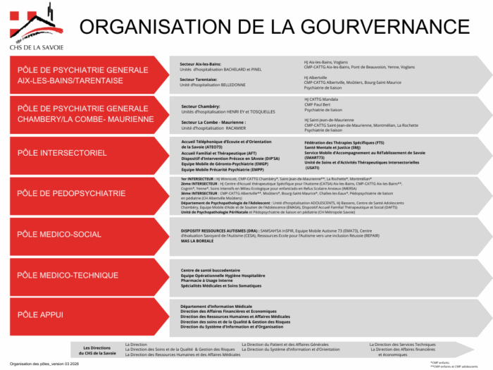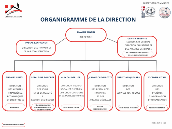 Le CHS de la Savoie est également en direction commune avec l’EHPAD La Centaurée de Bozel et l’EHPAD de la Rochette.