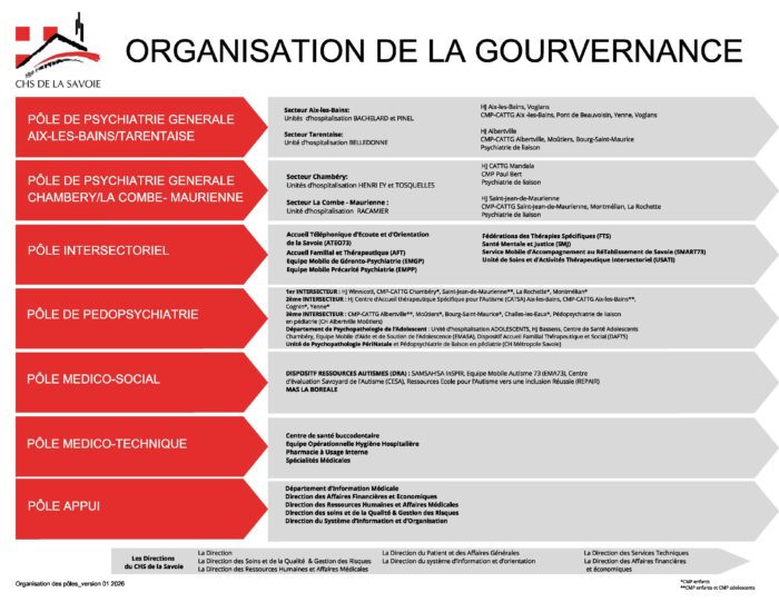 Le CHS de la Savoie est également en direction commune avec l’EHPAD La Centaurée de Bozel et l’EHPAD de la Rochette.